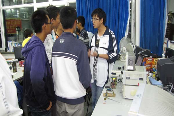 宣传内容主要以介绍科技创新为主,由于其为同学们在高中未曾接触的实践性活动,引起了大家的极高热情。在简短介绍后,学长们邀请同学们去科协参观。在位于21B296室的科协实验室里,学长们将各自的作品拿出来给同学们演示,引起阵阵轰动。同学们都纷纷表示要投身于科技创新里来。