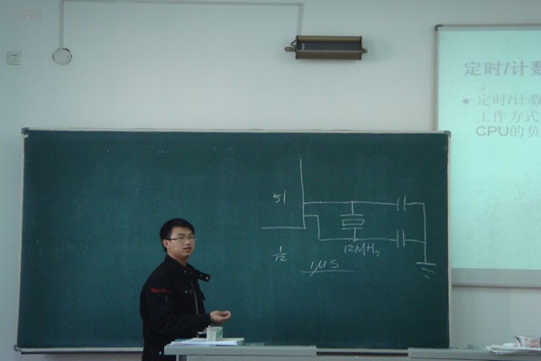 这次讲座的主要内容是介绍定时器的相关知识。他深入浅出,结合实际向同学们介绍了定时器。分别向同学们讲述了定时/计数器的定时和计算功能、及其控制寄存器,同时又介绍了工作方式控制寄存器TMOD。最后他演示了相关的程序事例。