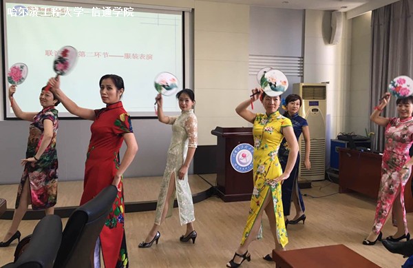 本次活动设有学院基本知识抢答、女工旗袍秀、游戏等环节,其中女教工旗袍秀成为最受欢迎节目,现场掌声迭起,八位身着古典旗袍的女教工依次入场,为大家献上精彩的视觉盛宴。