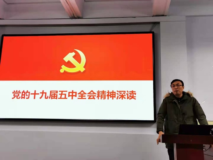 王晓亮结合《中共中央关于制定国民经济和社会发展第十四个五年规划和二〇三五年远景目标的建议》的起草和主要内容,向支部全体党员传达全会精神。