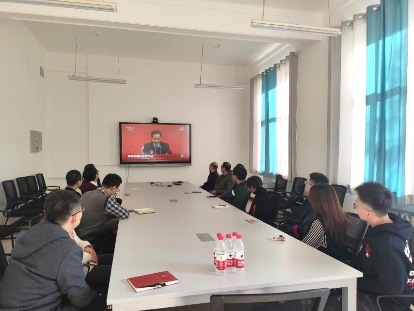 11月12日上午10时,beat365正版唯一官网必一领导班子成员和院直党支部全体党员在305会议室集中收看党的十九届六中全会新闻发布会线上直播,深入学习党的十九届六中全会精神。