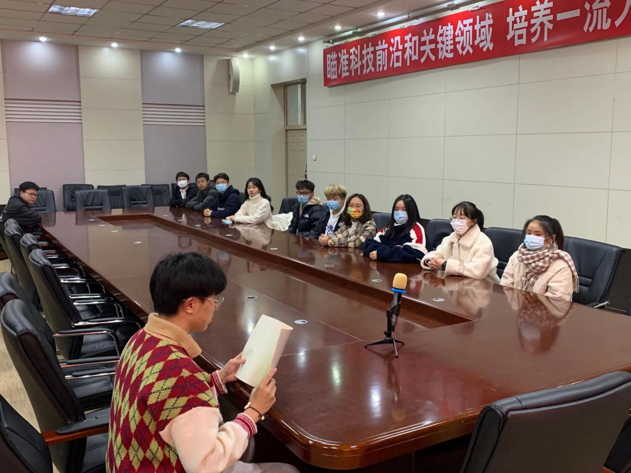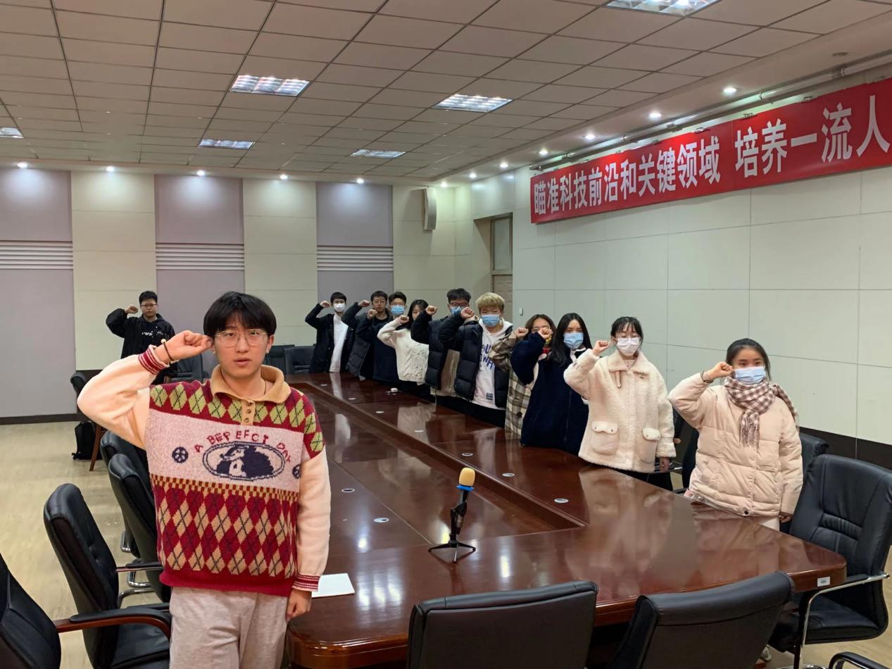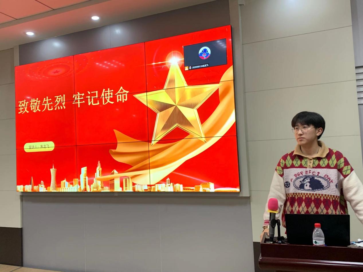 在团日活动中,朱龙飞带着大家学习一些英烈的先进事迹,然后与同学们分享了自己的心得体会并引导大家一同观看缅怀先烈的视频。学习结束后,同学们全体起立,举起右拳,重温入团誓词。