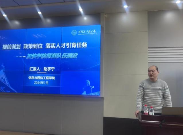 院长助理赵宇宁以《提前谋划 政策到位 落实人才引育任务 加快学院师资队伍建设》为题,分析学院师资队伍建设情况及工作举措。