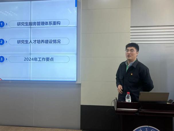 党委副书记、副院长宿南围绕研究生服务管理体系重构、研究生人才培养建设情况、全球化发展战略行动计划等方面,汇报了研究生培养、国际化重点任务指标。