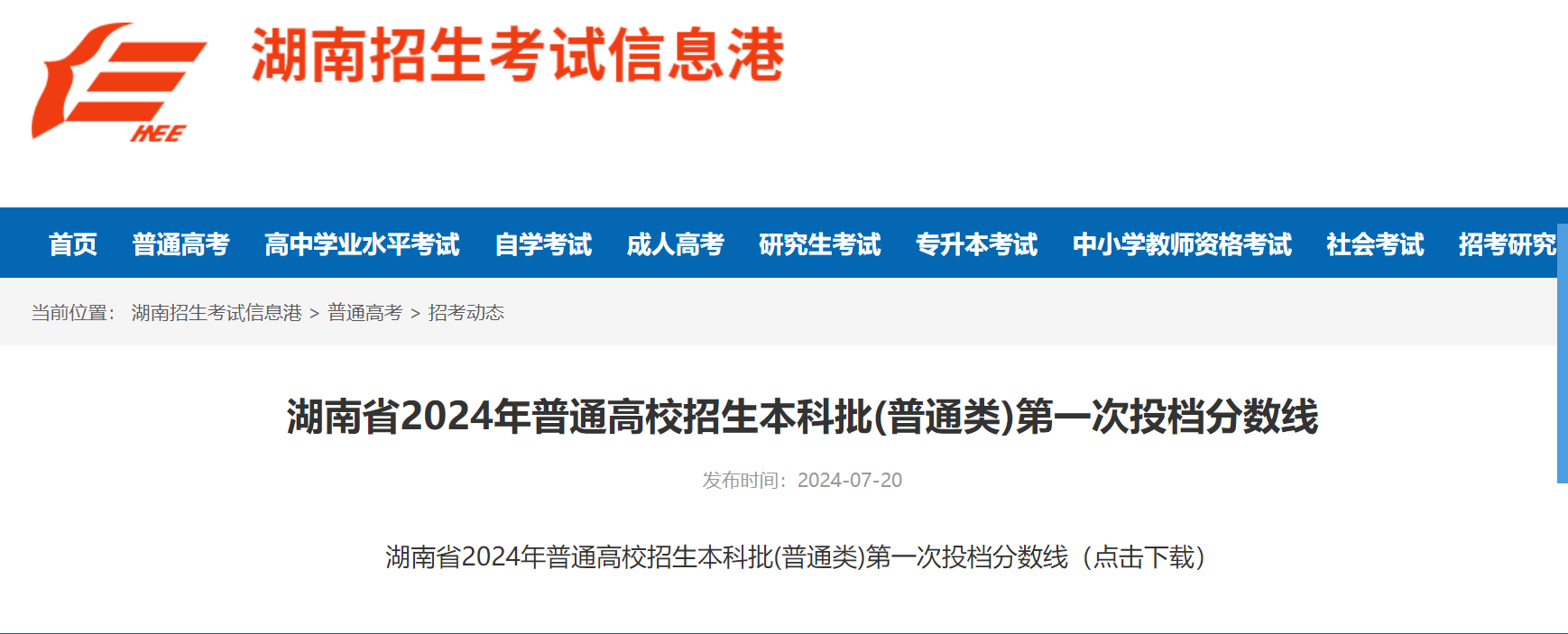 消息来源:湖南招生考试信息港、网络