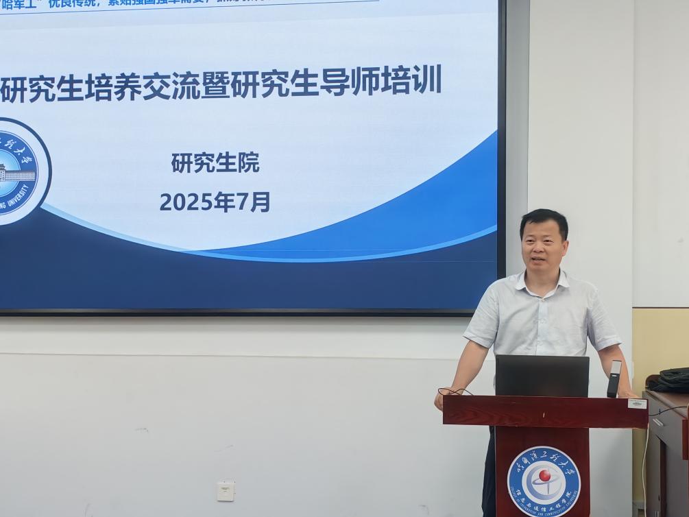 为进一步提升研究生培养质量,加强教师队伍建设,7月4日,学院召开2025年研究生指导教师专题培训会,校党委教师工作部部长、人力资源处副处长王晓迪,研究生院副院长史金辉受邀作报告。学院党委书记王锐、副院长乔玉龙出席会议,硕博导师及学院青年教师参加会议。党委副书记孙安斗主持会议。