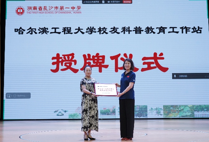报告开场前,学院党委书记王锐向两所中学授予“beat365正版唯一官网必一校友科普教育工作站”牌匾。她表示,湖南是红色沃土,是学校前身哈军工首任院长陈赓大将的家乡,为学校输送了大批胸怀祖国、信念坚定、素质过硬的青年学子。工作站将以国防科普教育为纽带,让哈军工“想的是党、为的是国、强的是军”的精神内核与哈工程“三海一核”战略科技力量通过校友专家的讲述,更生动地走进中学生的视野,助力更多湖湘学子从黄河之畔、湘水之滨走向深蓝海洋,成长为担当民族复兴大任的时代新人。