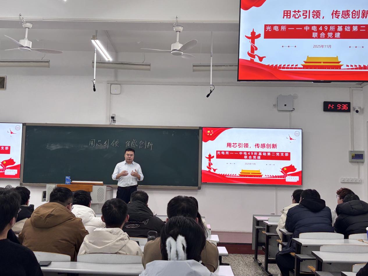 为深入贯彻落实党的二十届四中全会精神,推动教育科技人才一体化发展,11月19日下午,学院光电智能感知技术研究所党支部与中电集团49所基础第二党支部联合举办“用芯引领,传感创新”主题党日活动。40余名师生党员与49所专家共话科研报国,同谋协同育人。