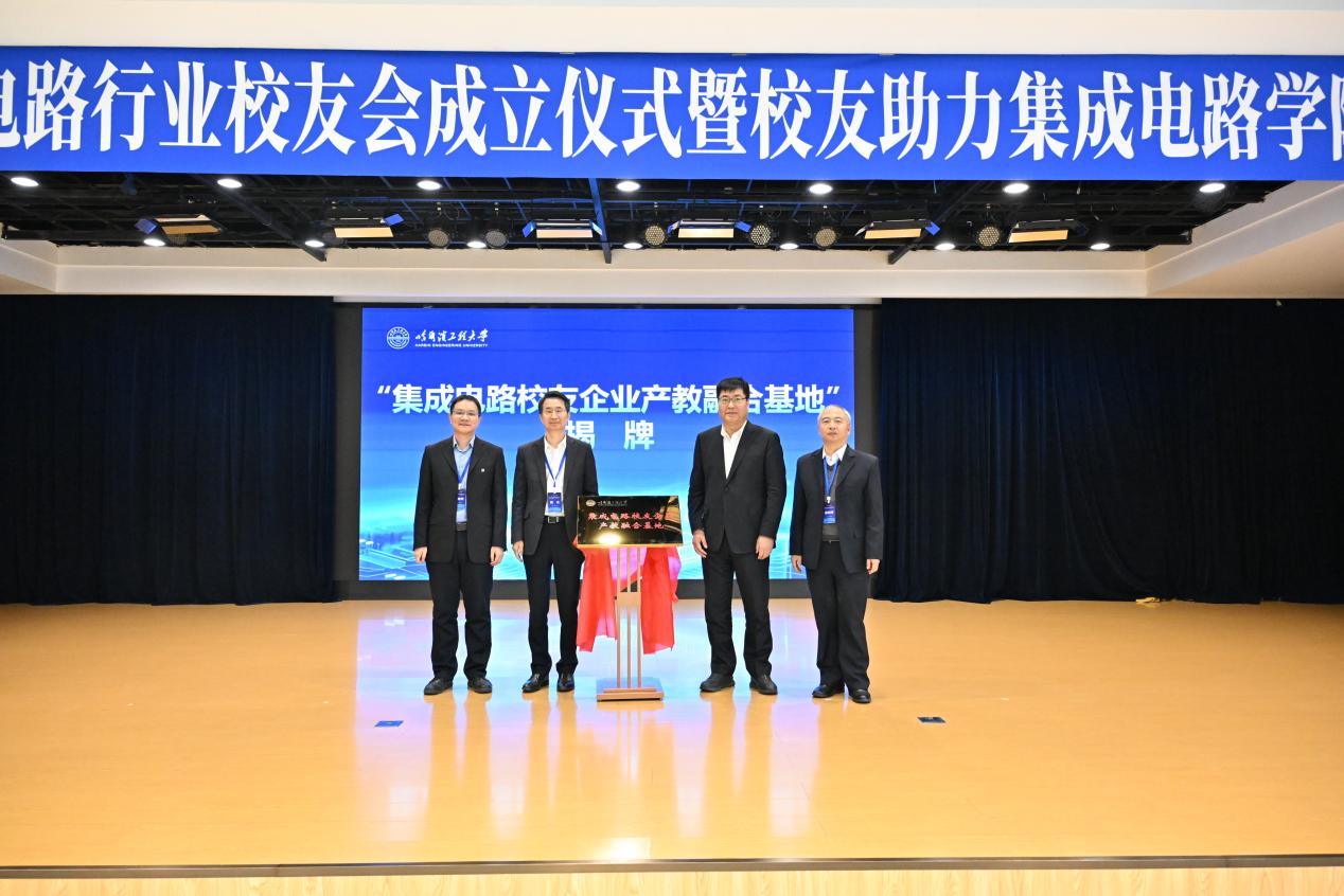 杨云春、陈杰、常务副会长杨晓君、beat365正版唯一官网必一执行院长张勇刚共同为“集成电路校友企业产教融合基地”揭牌。该基地旨在搭建校企协同育人实践平台,实现人才培养与产业需求的精准对接,为产教融合注入更多校友力量。