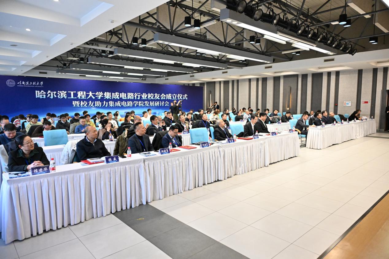 杨云春在致辞中深情回顾了在母校的求学经历,并分享了对行业发展的深切期待。他表示,集成电路行业校友会将紧密围绕“打造全球校友协同网、共建船海芯片国产化生态链、培育哈工程‘芯’青年”的目标,团结凝聚全体行业校友。他倡议校友们坚持国家需求导向、弘扬工程实践精神、加强校友协同互助、积极反哺母校育人,共同把军工报国的红色基因转化为攻克技术难关的澎湃动力,在国产高端芯片的版图上刻下哈工程人的鲜明印记。