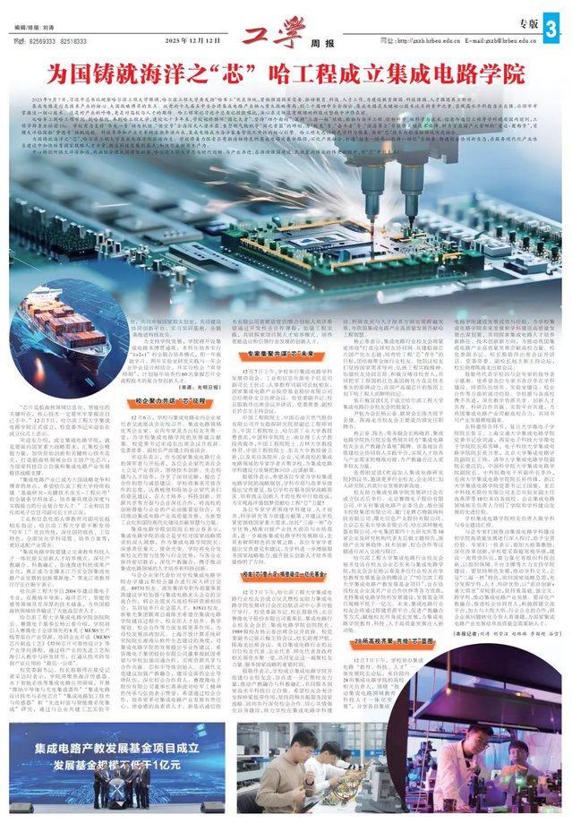 《工学周报》整版:为国铸就海洋之“芯” 哈工程成立beat365正版唯一官网必一